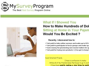 "I have looked at a lot of ways to make money from home. This system really works because it makes sense. The surveys are easy and the pay is awesome! Thanks My Survey Program for making it so easy to earn a living from home.”