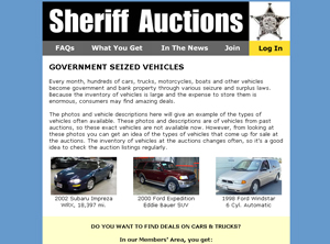 Use the Sherriff’s Auction website to search for and bid on seized, surplus, and repossessed vehicles at up to 90% off of the retail price.